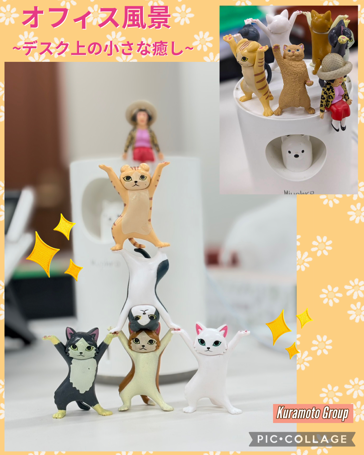 ある従業員のデスクに置かれているのはネット通販、ガチャガチャで入手した猫グッズ。